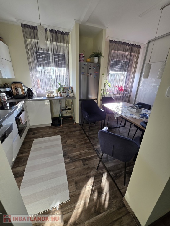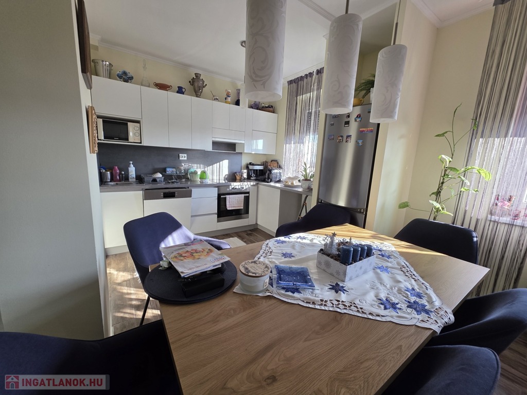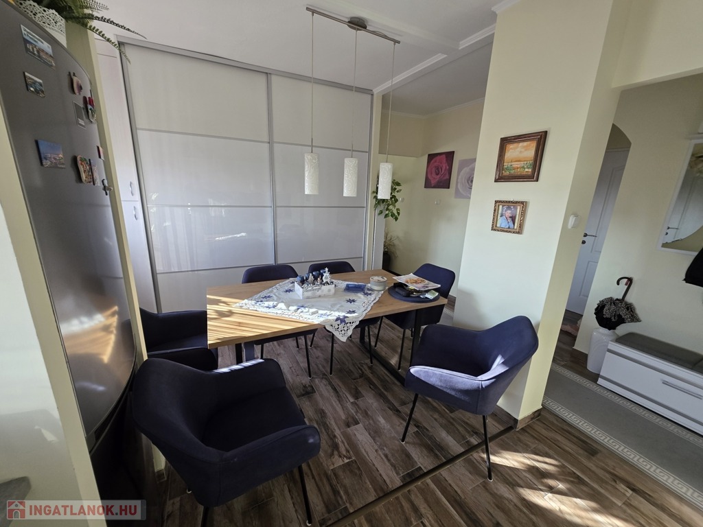 Zala vármegye, Hévíz 61m2-es erkélyes lakás eladó. A kedvelt zalai fürdőváros központjának közelében, a nyolcvanas évek első felében épült ötszintes, szigetelt társasház negyedik emeletén található, felújított, korszerűsített, gépesített és bútorozott ingatlanban két szoba erkéllyel, konyha étkezővel, kamra, közlekedő, fürdőszoba és illemhelyiség került kialakításra. Az új, redőnnyel és szúnyoghálóval felszerelt ablakokkal rendelkező, légkondicionált lakás melegéről távfűtés gondoskodik, radiátoros hőleadókkal. Parkolni a társasház mellett díjmentesen lehetséges.