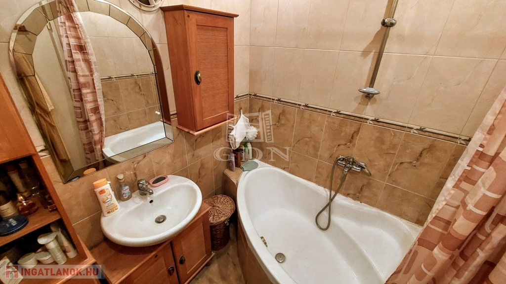A fürdőszobában sarokkádat találunk, a WC külön helyiségben lett elhelyezve.