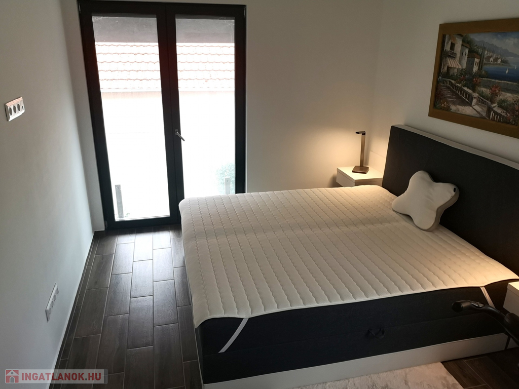 Zala vármegye, Hévíz 76m2-es erkélyes lakás eladó. A 2021-ben épült, szigetelt négylakásos társasház első emeletén található ingatlanban előtér, erkélyes nappali, konyha, étkező, két hálószoba, fürdőszoba és illemhelyiség került kialakításra. A tehermentes ingatlan melegéről padlófűtés és hűtő, fűtő klíma gondoskodik. A szigetelt társasház előtt a lakáshoz külön parkolóhely is tartozik. A bútorzat megegyezés tárgyát képezi. Az állandó lakhatásra, vagy akár befektetésnek is alkalmas ingatlan annak megvásárlása után azonnal birtokba vehető.