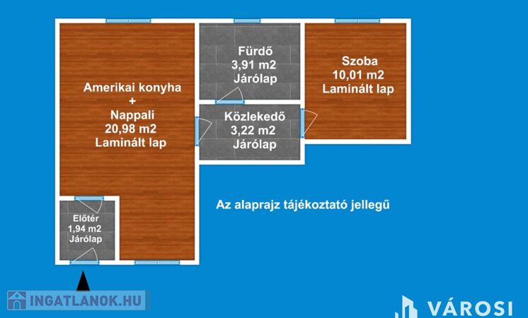 Az ingatlan 1 db amerikai konyhás nappalival, 1 db hálószobával, 1 db fürdőszobával Wc-vel, közlekedővel, rendelkezik. Az ingatlan elhelyezkedésre, kialakítása miatt rendkívül sokrétű a felhasználása - akár lakás, vagy befektetési célra -, amely maximálisan kiemeli ezt az ingatlant az átlagos lakások sorából és egyedülálló választássá teszi azt.