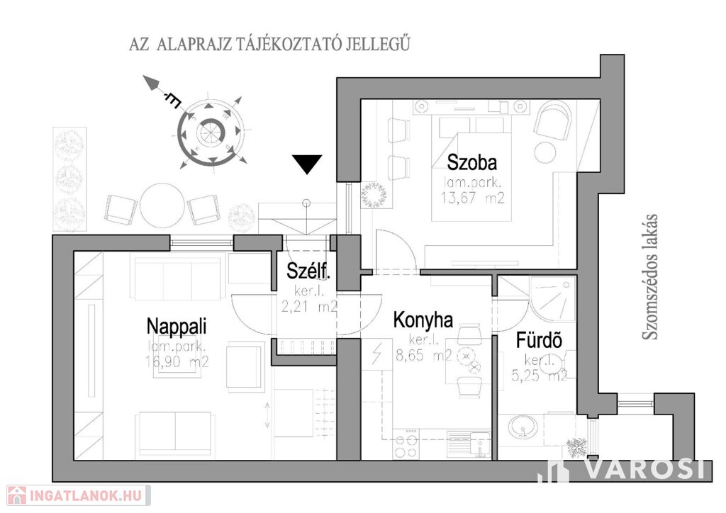 - Nappali: ~17,00 m2