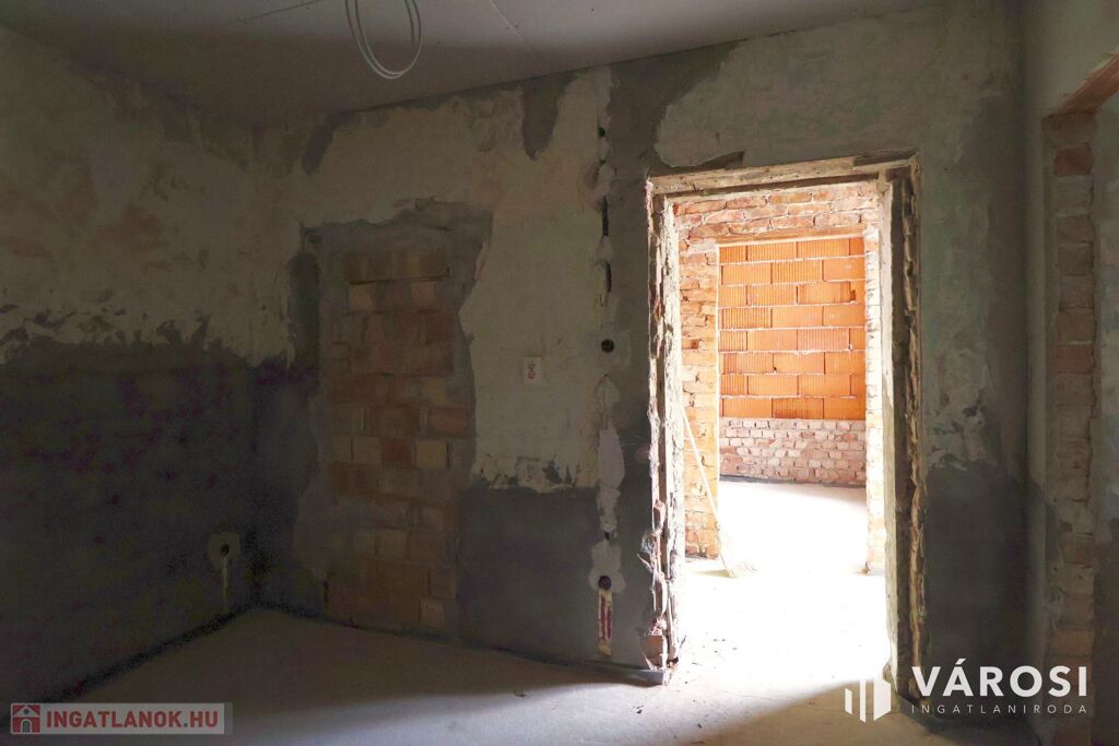 Eladó Hódmezővásárhely belvárosában szerkezetkész, földszinti téglalakás.