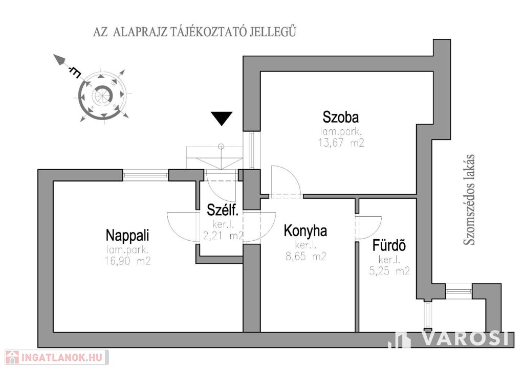 - Lakás: ~ 47 m2 (lásd: alaprajz)