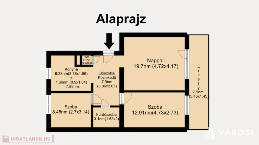 - 7,9 m²-es, tágas erkély