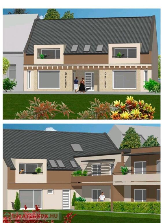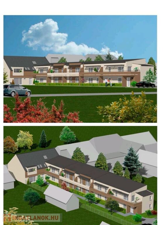 Jánossomorja központi részén épülő társasházban 1 emeleti, emelt tégla parapetes tetőtéri 35m2 nettó lakóterületű, nappali plusz 1 hálószobás, 4,2m2-es erkélyel rendelkező téglalakás eladó.