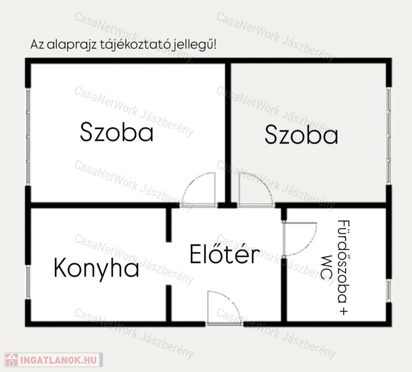 - Helyiségek: előtér, konyha, két szoba, fürdőszoba, illetve a lakás közvetlen bejárata mellett egy spájz (1,46 m2) is található, mely szintén az ingatlan részét képezi.