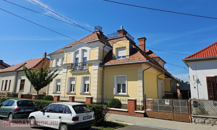 Kaposvár egyik legszebb utcájában, a Kassa utcában kínáljuk megvételre ezt az igazán igényesen megtervezett és felújított, kibővített elegáns kétlakásos polgári családiház önálló földszinti lakását a hozzá tartozó teljes telekkel. Az étkező helyezkedik el középen, ide csatlakozik a délnyugati fekvésű, kert felé néző kellemes terasz, illetve innen nyílik minden további helyiség közvetve vagy közvetlenül. Van három tágas, keleti tájolású szoba - a szélső déli ablakkal is ellátva, - fürdő zuhanyzóval és káddal, külön WC, valamint a konyha. Plusz egy háztartási helyiség, ami részben mosókonyha, részben tároló, de itt kapott helyet a kazán és a bojler is. Mindhárom szoba megközelíthető külön is, de az első és a középső át is járható. Az első, délkeleti szobának önálló bejárata nyílik a lépcsőházból is, így akár iroda funkcióra is alkalmas. A nappaliként használt középső szobában van egy üvegfalú kandalló, ami nem csupán szép és jó hangulatú, hanem hasznosan egészíti ki a cirkós fűtést. Minden külső nyílászáró SCHÜCO tip., hőszigetelt üvegezéssel, redőnnyel. A lakás alatt több részből álló pince, hátul dupla garázs és melléképület áll rendelkezésre, ezek összesen 209 m2-et tesznek ki (lakótér: 128,54 m2, terasz: 13,31 m2, pince: 28,14 m2, garázs és tárolók: 39 m2). A telek 630 m2, a garázsokig térkövezve, egyébként gyeppel borított, szépen parkosított. Mind a lakás, mind a kert kiváló állapotban vannak. A 3 fázis vételezése mind az udvaron, mind a garázsban rendelkezésre áll. Elsősorban Pécsen vagy környékén építési telket, családi házat értékegyeztetéssel beszámítunk kizárólag olyan helyen, ahol van vezetékes internet.