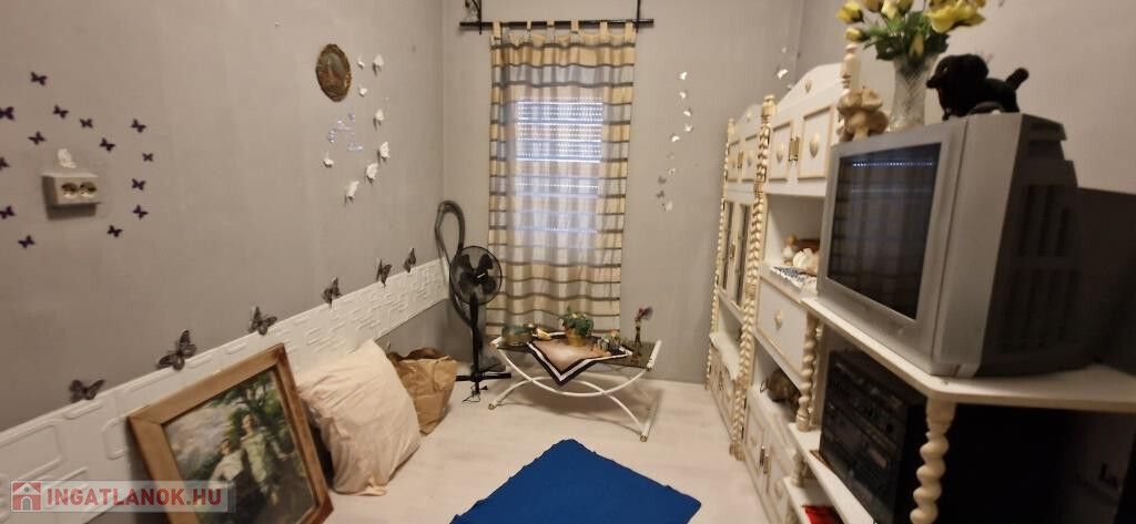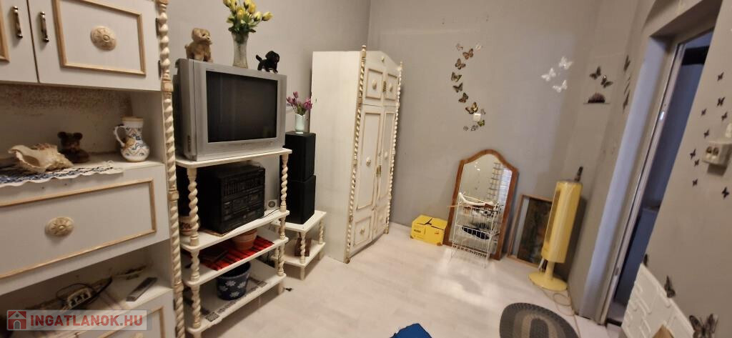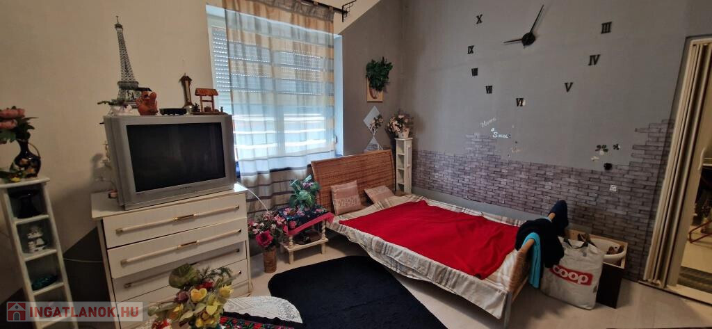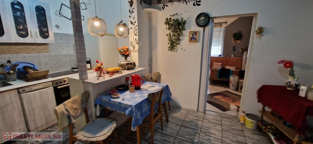 Kaposváron, a Bartók Béla utcában kínáljuk megvételre ezt a valóságban 67 m2-es (a tulajdoni lap szerint 57 m2-es) társasházi lakást. A földszinten helyezkedik el, 1 + 2 félszobás. Bejárata hátul, a terasz felől nyílik, ahonnan az előtérbe léphetünk. Ide kapcsolódik a zuhanyzós fürdő, illetve innen mehetünk tovább a tágas étkezős konyhába, majd az utcafronti nagyszobába, vagy a legkisebb, jelenleg gardróbként használt szobába. A nagyszobából nyílik még egy háló utcai ablakkal. A lakás jó állapotú, két éve történtek benne felújítások. Fűtése kétféle módon megoldható, van egy kályha a nagyszobában, ami kellemes meleget ad, illetve elektromos radiátorokkal. Tartozik hozzá egy teraszként jól kihasználható, betonozott udvar fedett kiülős résszel, valamint melléképületek és pince is. A belváros gyalog 10 perc sétával elérhető, de buszmegálló is van a közelben.