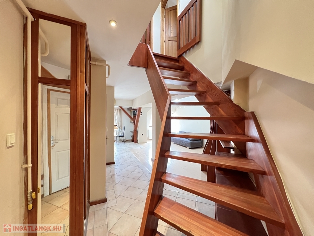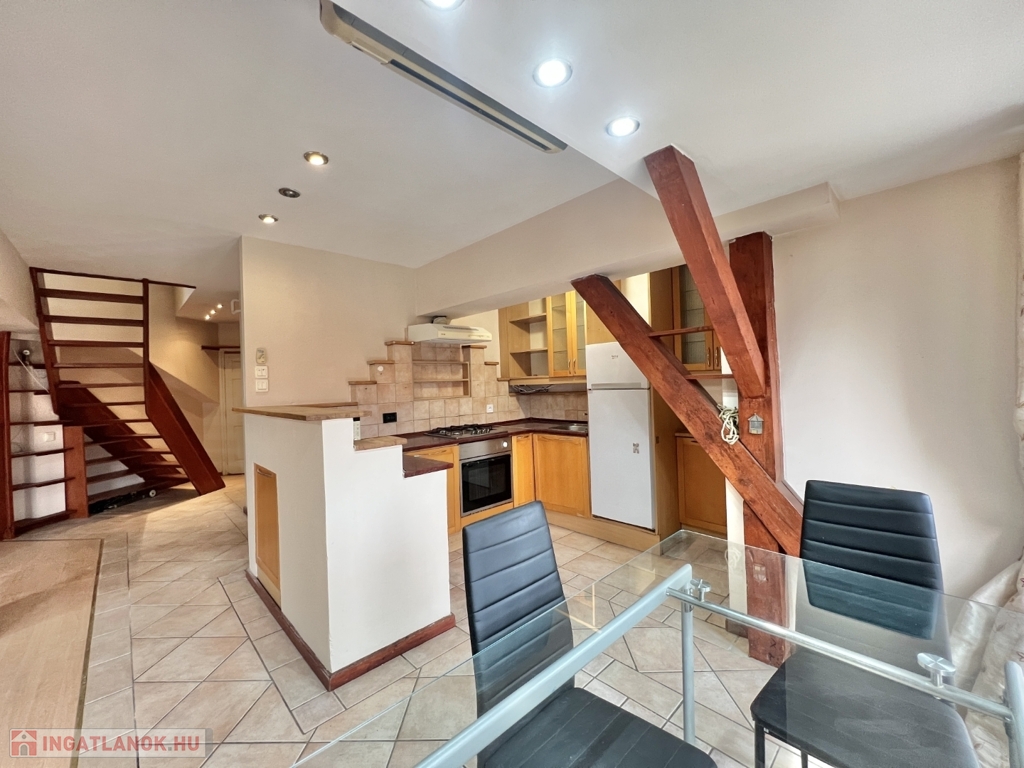 Kaposváron a belvárosban – a Fő utcában – liftes társasház, 3. emeletén lévő 60 m2-es, azonnal költözhető lakás - a képeken látható műszaki állapotban - eladó. A lakás alsó szintjén előszoba-nappali, étkező-konyha, fürdőszoba-wc helyiségek kerültek kialakításra. A tetőtérbe az előtérben lévő lépcsőfeljáró vezet fel, ahol további 2 félszoba, wc-kézmosó vannak. A lakás fűtése és melegvíz ellátása kombi gázkazánnal megoldott, valamint légkondicionáló is felszerelésre került. Az ingatlan a lokációja miatt akár befektetésnek is kitűnő lehetőség, számos közintézmény csupán néhány száz méteren belül található, például a Megyeháza, Törvényszék, Kormányhivatal, Polgármesteri Hivatal, de akár a Kossuth tér is csupán 1 perc sétával elérhető.