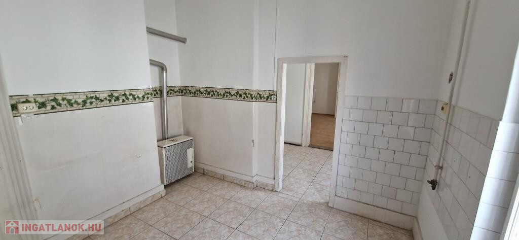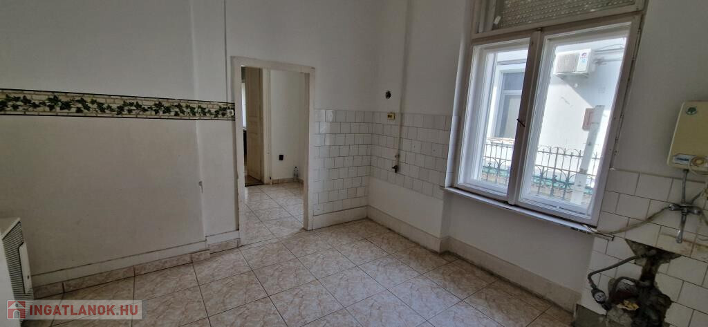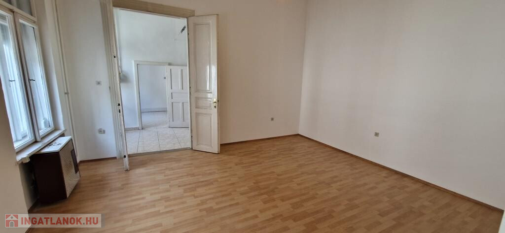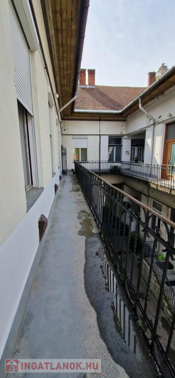 Kaposvár belvárosában, az Ady Endre utcában kínáljuk megvételre ezt az első emeleti, 93 m2-es lakást. Méretei és elosztása alapján alkalmas egy nagyobb családi otthon kialakítására, vagy kettéválasztva két kisebb lakást is létre lehet hozni belőle. Bejárata függőfolyosóról nyílik, ami saját erkélyként is használható, mivel leghátsó lakás lévén, le van zárva. Az előtérből jobbra két egymásból nyíló, nagyméretű, parkettás szoba található, a végén pedig a fürdő. Balra az egykori konyha van a kamrával, és egy kicsi, de ablakos tároló helyiség. A belmagasság lehetővé teszi a galériázást, ezzel szükség szerint tovább növelhető a lakóterület. Minden ablak nyugati tájolású, a függőfolyosóra, illetve a Kontrássy köz felé néznek. A fűtés egyedi gázos, konvektoros. Ha valaki kettéválasztaná a lakást, ötletes megoldásokkal, galériákkal, álmennyezettel akár két 50-60 m2 lakóterületű tágas, barátságos és praktikus otthont is kihozhat belőle. Remek lehetőség a belváros szívében befektetésként, vagy saját használatra egyaránt!