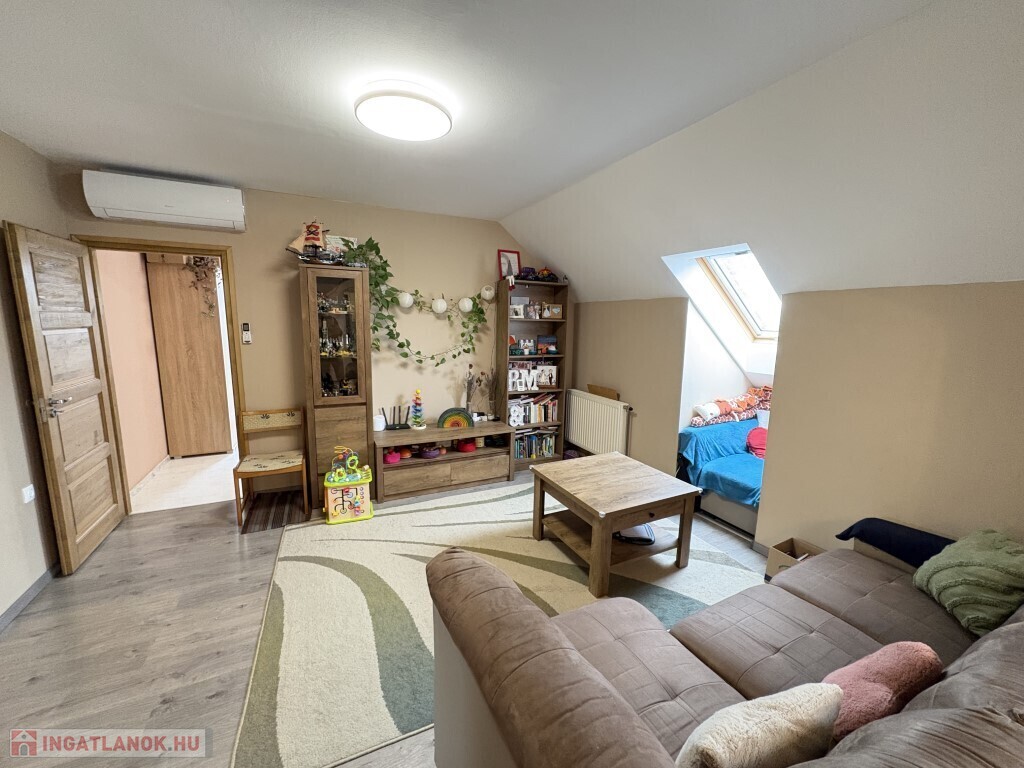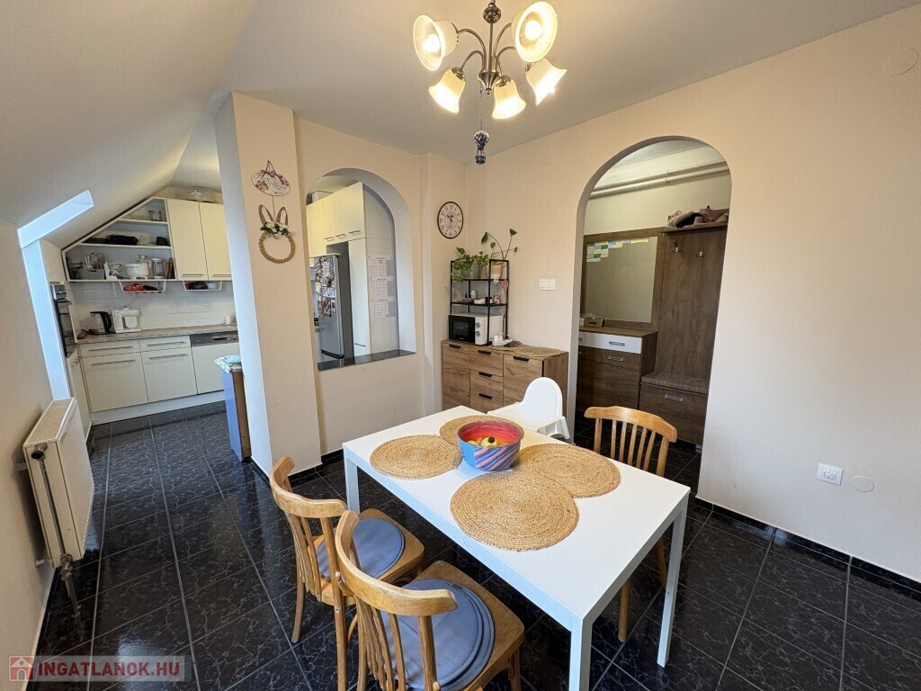 Kaposváron a Jutai úton, hangulatosan kialakított és felújított 87 m2-es tetőtéri lakás eladó. A lakásban előszoba, étkező-konyha (beépített BOSCH és Zanussi gépekkel)-nappali, 3 félszoba, közlekedő, fürdőszoba, wc helyiségek kerültek kialakításra, a rezsije nagyon kedvező, a fűtése és melegvíz ellátása kombi Ariston kazánnal megoldott, valamint 2 db légkondicionáló is felszerelésre került. Az épület előtt a parkolás ingyenesen lehetséges.(980) Amennyiben az ingatlan felkeltette az érdeklődését, kérem hivatkozzon a 980. számú ajánlatra! Irodánk címe: 7400 Kaposvár Irányi D. u. 9