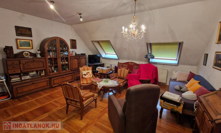 Kaposvár belvárosában, a Dózsa György utcában kínáljuk megvételre ezt a nagyobb méretű, igazán jó állapotú lakást. A második emeleten helyezkedik el, alapterülete 127 m2, belső kétszintes. Az alsó szinten tágas nappali, étkező, konyha kamrával, egy zuhanyzós fürdő és külön WC lett kialakítva, míg fent három szoba és egy másik, kádas fürdő kapott helyet. A jól kihasználható keleti fekvésű erkély hátra, a kert felé néz. Fűtése cirkós. A lakás nagyon barátságos, otthonos. Tartozik hozzá a zárt udvarban egy 15 m2-es önálló garázs is, ez opcionálisan megvásárolható. Az épület háta mögött szépen gondozott füves, parkos kert áll rendelkezésre.