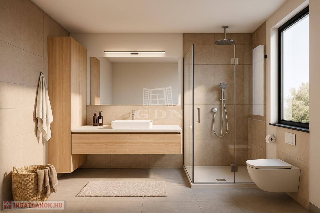 A jól átgondolt terveknek köszönhetően a lakás elosztása kiváló, az életterek kialakításánál a funkcionalitás dominált, kényelmes teret biztosítva leendő lakóinak.