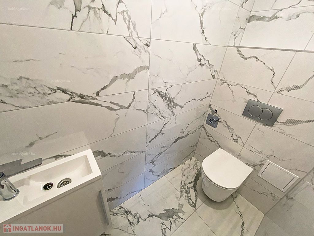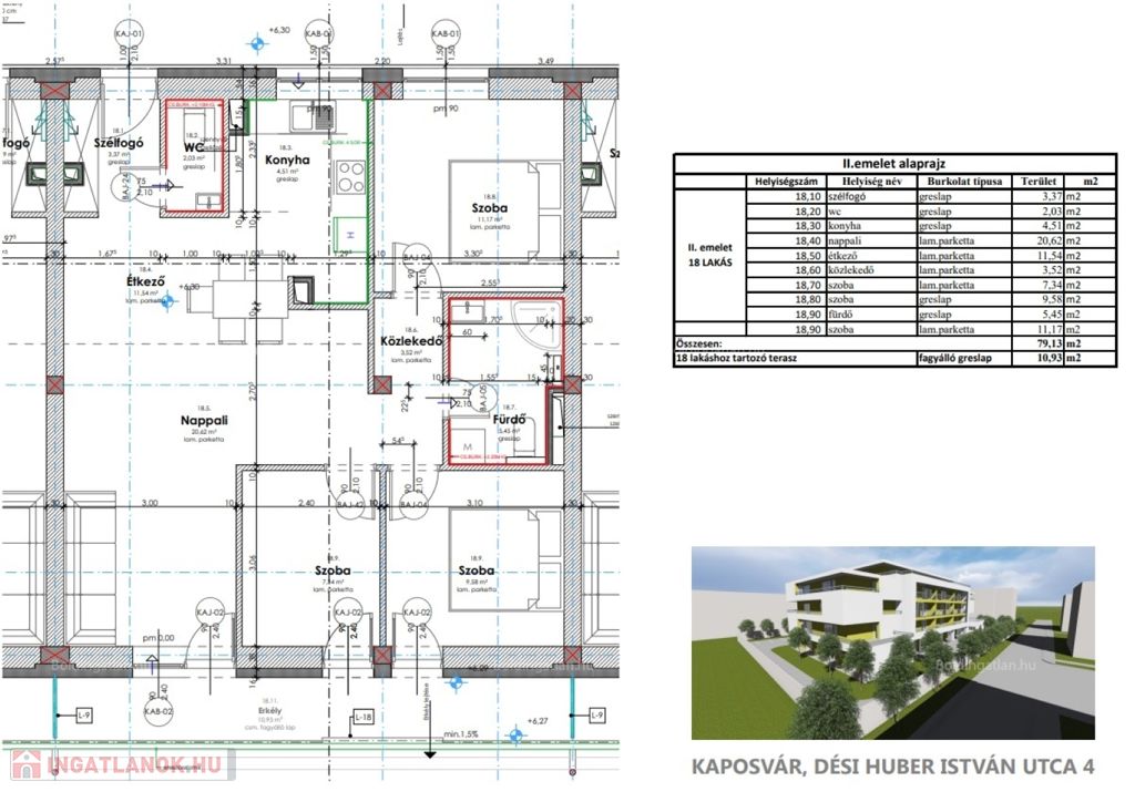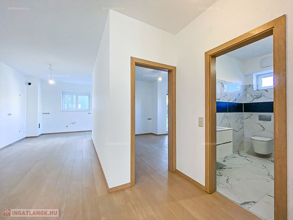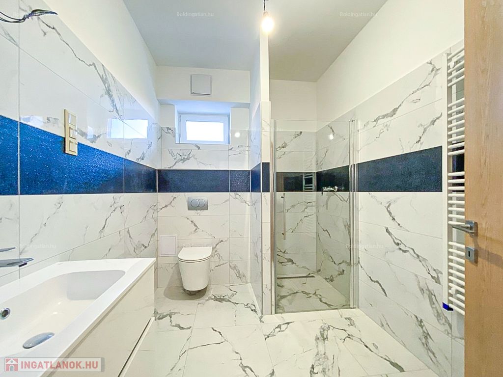 Kaposváron a belvárosban, a Dési Huber utcában - a kórház közelében - igényes kivitelben épült, modern architektúrájú 30 lakásos, új társasház 2. emeletén, 80 m2-es lakás - 10 m2-es erkéllyel együtt eladó. A lakásban nappali-étkező-konyha, 3 szoba, közlekedő, szélfogó, fürdőszoba, wc helyiségek kerültek kialakításra. Az épület korszerű energetikájú, a lakás fűtés levegő-víz hőszivattyús Nibe fűtésrendszerrel - padlófűtéssel, a fürdőszobában elektromos törölközőszárító radiátorral - van megoldva, továbbá a lakás hűtése fan-coil Gree rendszerrel történik. A lakás fűtéséhez, vagy hűtéséhez szükséges villamosenergiát az épület tetején elhelyezett napelemek biztosítják, a társasházban központi vízlágyító berendezés is beszerelésre került. A fürdőszobában magas minőségű Wellis szerelvények kerültek beszerelésre. A lakáshoz igény esetén 3.000.000.- Ft-ért az épület zárt udvarában 1 személyautó részére parkolóhely megvásárolható! Az ingatlan megvásárlásához CSOK igényelhető!