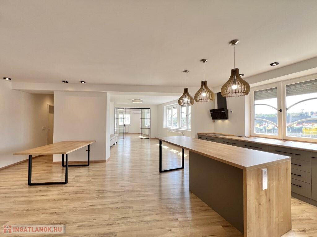 Kaposváron a belvárosban - a Teleki u-ban - 2025-ben igényesen felújított 140 m2-es 2. emeleti - akár azonnal is birtokba vehető - exkluzív lakás eladó. A lakásban előszoba-étkező-konyha beépített konyhabútorral és gépekkel, nappali, 2 szoba, erkély, fürdőszoba, wc, tároló helyiségek találhatóak. A lakást a tulajdonosa 2025-ben teljes körben felújította, a fűtés és a melegvíz ellátását kombi gázkazán szolgáltatja, valamint légkondícionáló is felszerelésre került.