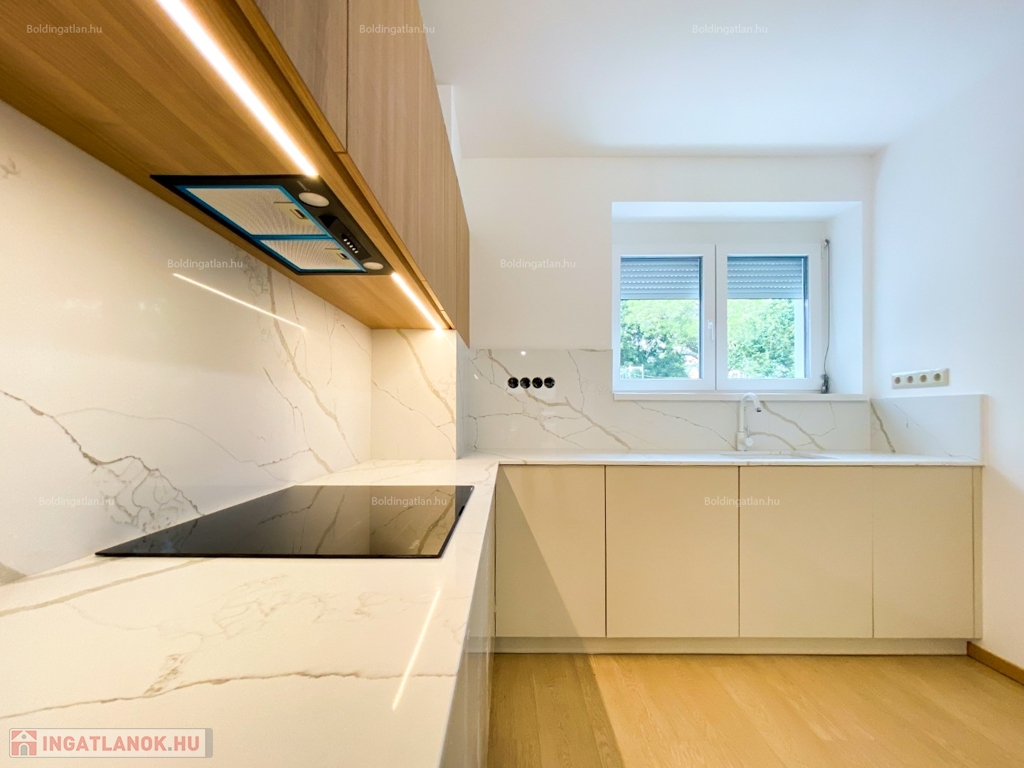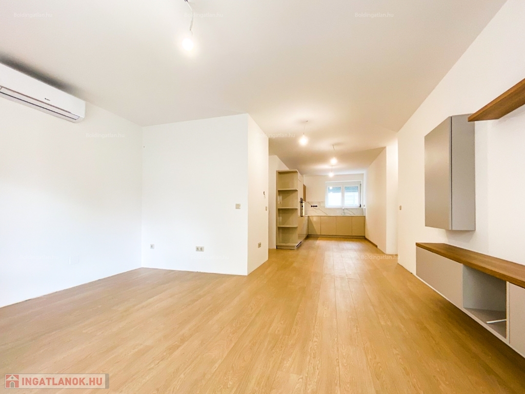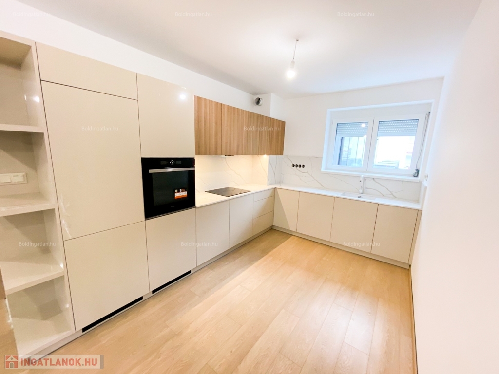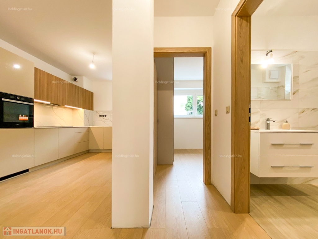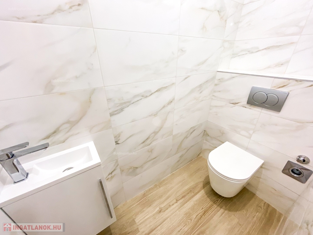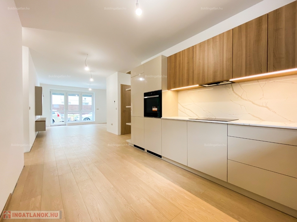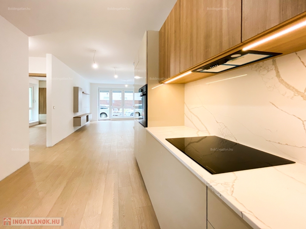 Kaposváron a belvárosban, a Dési Huber utcában - a kórház közelében - igényes kivitelben épült, modern architektúrájú 30 lakásos, új társasház földszintjén, 81 m2-es lakás, 17 m2-es terasszal együtt eladó. A lakásban nappali-étkező-konyha, 2 szoba, közlekedő, szélfogó, fürdőszoba, wc helyiségek kerültek kialakításra. Az épület korszerű energetikájú, a lakás fűtés levegő-víz hőszivattyús Nibe fűtésrendszerrel - padlófűtéssel, a fürdőszobában elektromos törölközőszárító radiátorral - van megoldva, továbbá a lakás hűtése fan-coil Gree rendszerrel történik. A lakás fűtéséhez, vagy hűtéséhez szükséges villamosenergiát az épület tetején elhelyezett napelemek biztosítják, a társasházban központi vízlágyító berendezés is beszerelésre került. A fürdőszobában magas minőségű Wellis szerelvények kerültek beszerelésre. A lakáshoz igény esetén 3.000.000.- Ft-ért az épület zárt udvarában 1 személyautó részére parkolóhely megvásárolható! Az ingatlan megvásárlásához CSOK igényelhető!