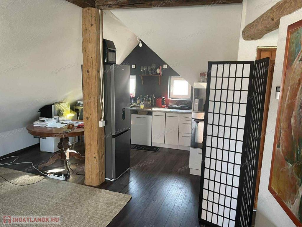 Kecskeméten a BELVÁROSBAN EGYEDI KIALAKÍTÁSÚ, 1 emeleti, 1 szobás lakás ELADÓ. Jellemzők: - Az ingatlan hivatalos használati megosztással tud birtokba kerülni - A lakás brutto:50 nm, de a ferde falak miatt hivatalosan netto:30 nm - Igényes kivitelezés és berendezés - Beépített gépesített konyhabútor - Zuhanyzós fürdőszoba - Hűtő- fűtő klíma, padlófűtés, kedvező rezsi - Terasz 4 nm - Jelenleg hosszútávú bérlő lakja 2028-ig, így befektetésnek is ajánlott.