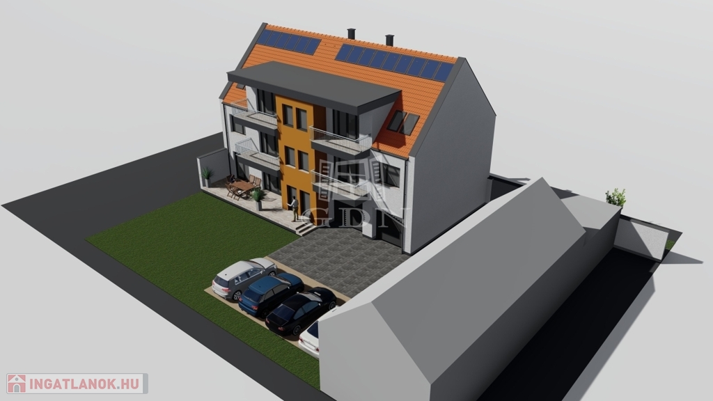 2026 júliusi kulcsrakész átadással, belváros közeli, most épülő, I. emeleti, nappali+3 szobás, 73,4 nm, erkélyes lakás, 5 lakásos társasházban eladó.