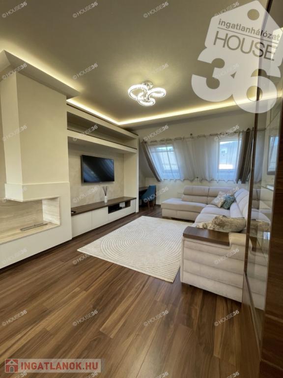 Nappali + 3 szoba, garázs, fürdő, tágas nappali étkező, amerikai konyha.
