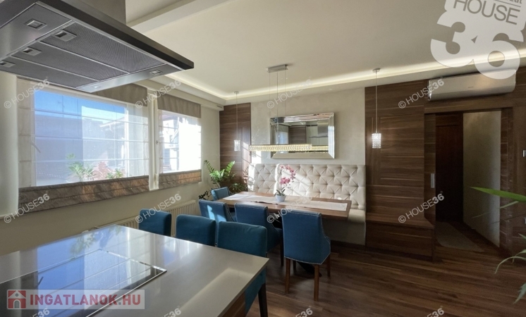 A lakás bruttó 93 m2, lakberendező által kialakított, prémium minőségű, ottmaradó beépített stílusos, egységes bútorzattal, magas színvonalú gépekkel felszerelve!