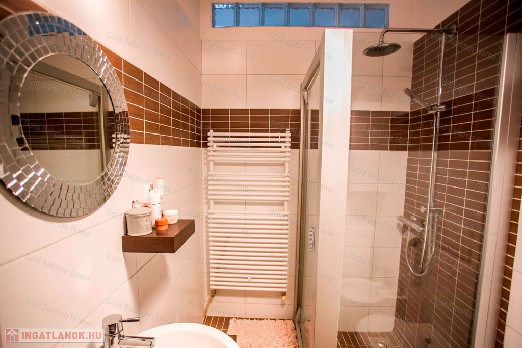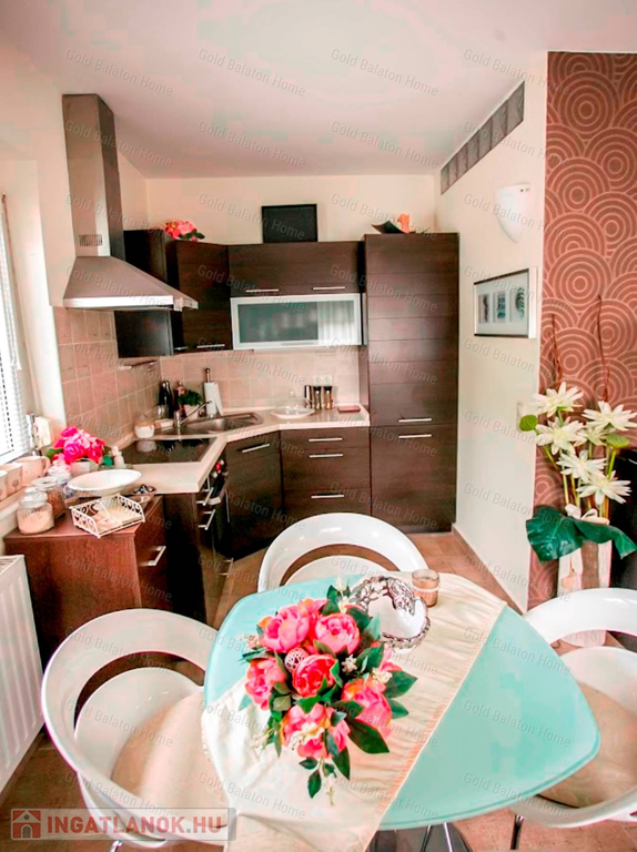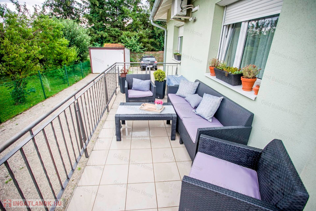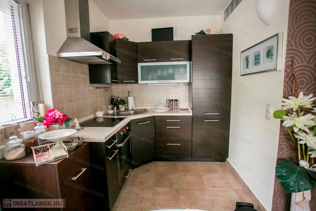Egyszintes nívós LAKÁS egyedi bejárattal, amerikai konyhával, 1 hálószobával, fürdőszobával, nagy terasszal, garázzsal a Hévízi-tótól 3 000 méterre, a Balatontól 5 500 méterre.