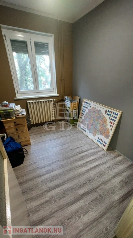 Az ingatlan a társasház első emeletén helyezkedik el, 2+1 félszobás kialakítású, melyen kívül előszoba, konyha, kamra, fürdő, külön WC és a parkra néző erkély áll rendelkezésre.