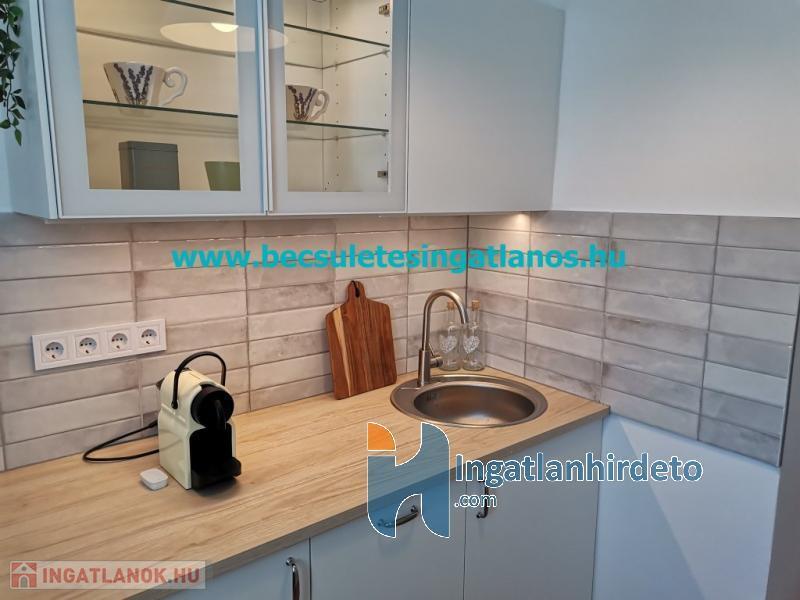 A lakásban minden vezeték, nyílászáró, burkolat és szaniter megújult, a konyha vadonatúj gépekkel felszerelt.