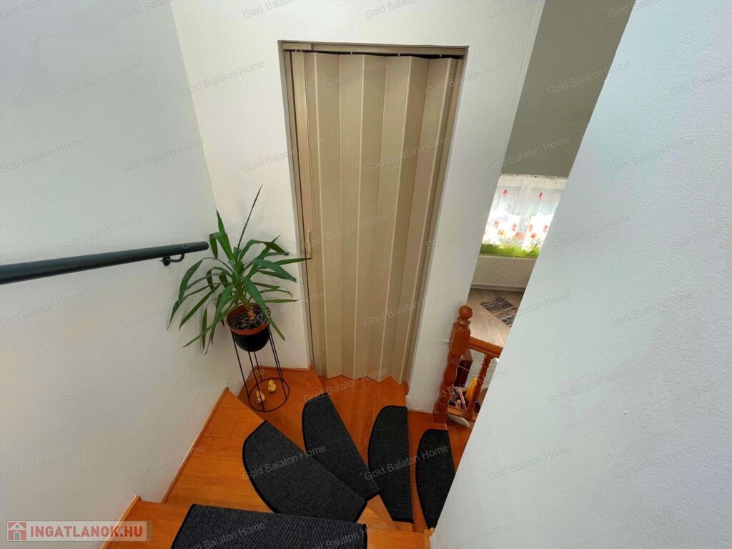 - szint 2: lépcsőfordulónál tároló, 2 szoba, folyosó, fürdőszoba zuhanyzóval, külön WC