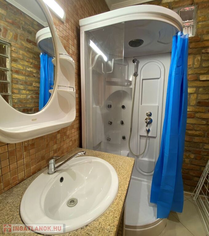 - Fürdőszoba: zuhanykabin, fürdőkád