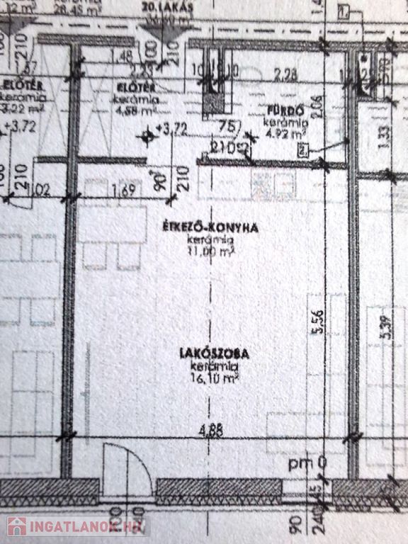 A lakás 36,60 nm, helyiségei:előtér 4,68 nm, fürdőszoba 4,92 nm, étkező/konyha 11,00 nm, nappali/lakószoba 18,10 nm.