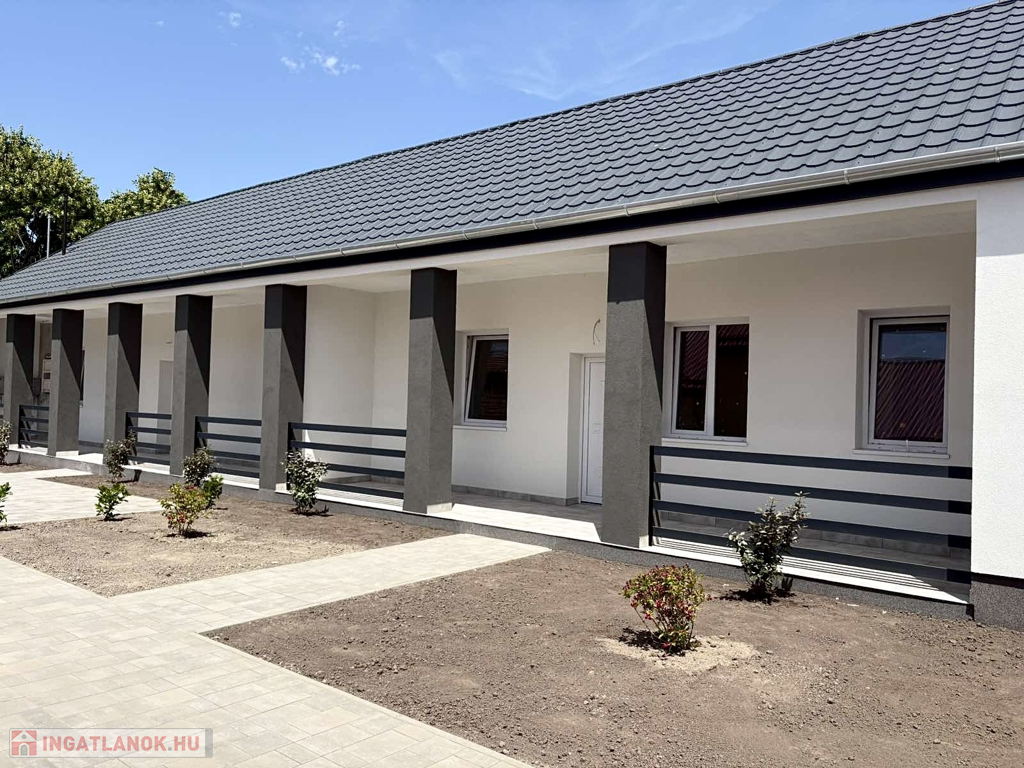 Eladó hangulatos, kis lakás fedett terasszal – Kiskunlacházán, felújított ikerházban!