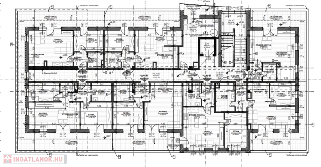 A társas-házban 31 db lakás kerül megépítésre, a földszinti és első emeleti lakások erkély nélküliek, a 2 emeleti lakások terasz kapcsolattal rendelkeznek.