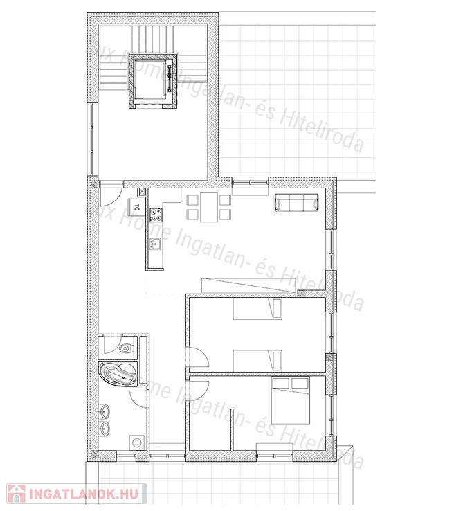 - 26,33 nm nappali konyhával