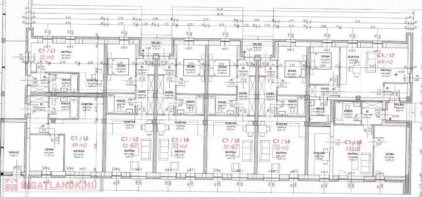 A C1 és C2 épületben 32 és 52 m2 közötti méretűek a lakások. A nappalik a teraszokon keresztül kertkapcsolattal rendelkeznek. Mindkét épületben 8-8 lakás kerül kialakításra.