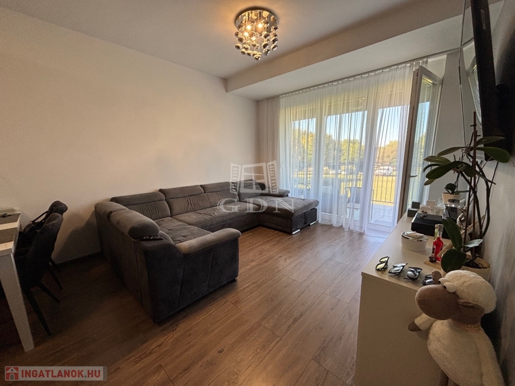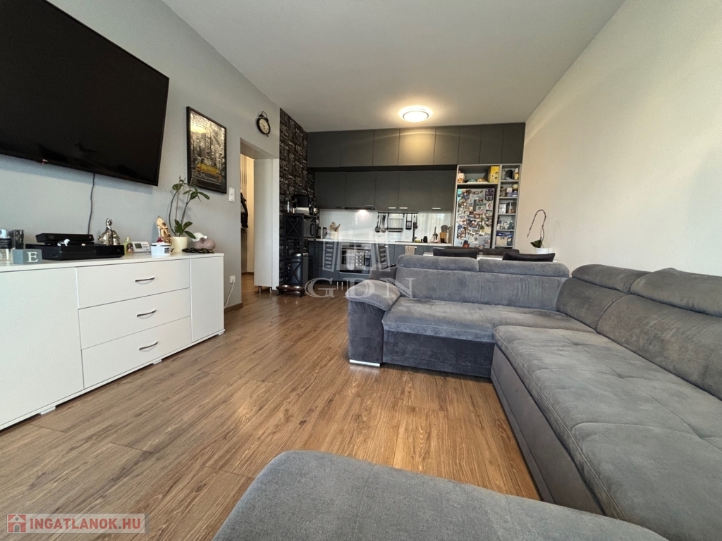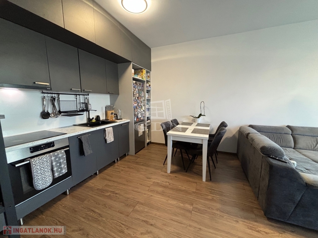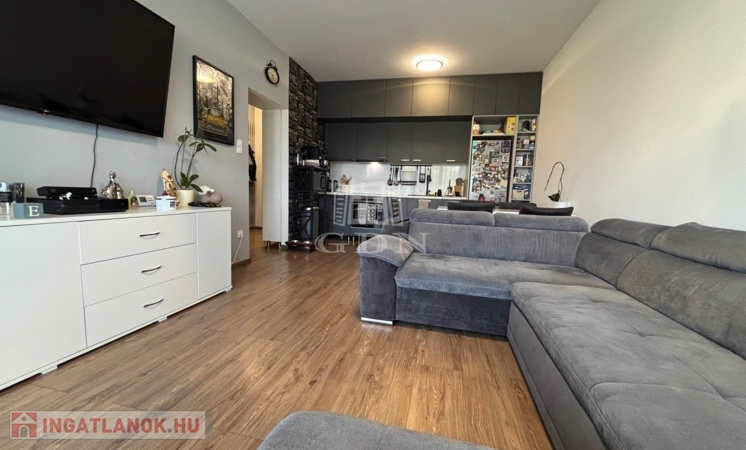 Az 1. emeleti, 60 négyzetméteres ingatlan amerikai konyhás nappalival és 2 szobával rendelkezik, ideális választás lehet családok vagy befektetők számára.