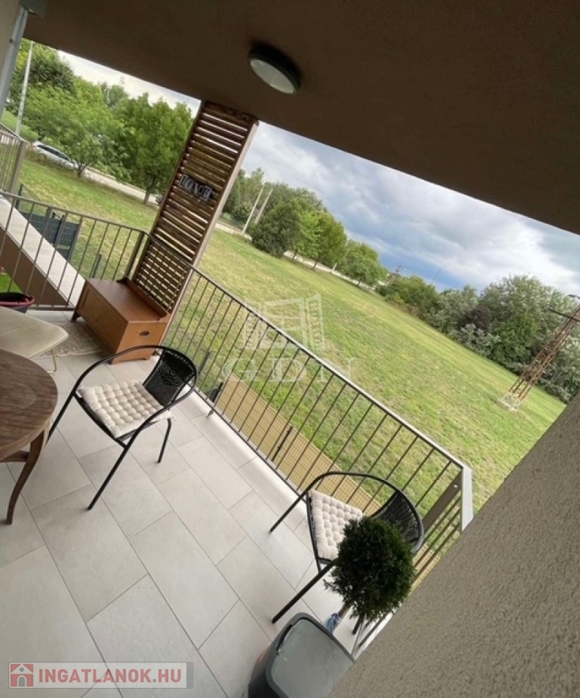 A lakáshoz tartozik egy 7 négyzetméteres terasz is, ahol a reggeli kávéját élvezheti a friss levegőn.