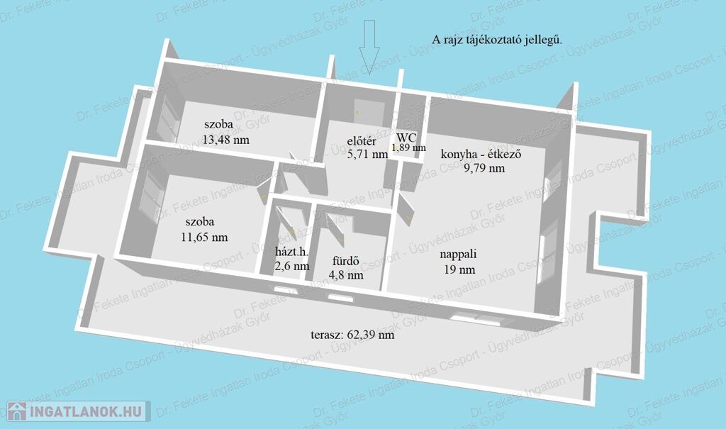 Igazi ritkaság. 3 oldalról világos ingatlan, körbe 62,39 nm-es terasz (nevezhetjük akár Penthouse-nak is)