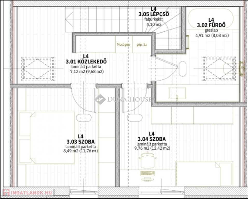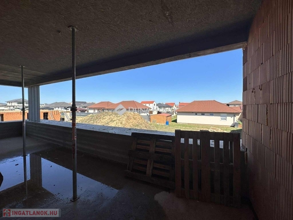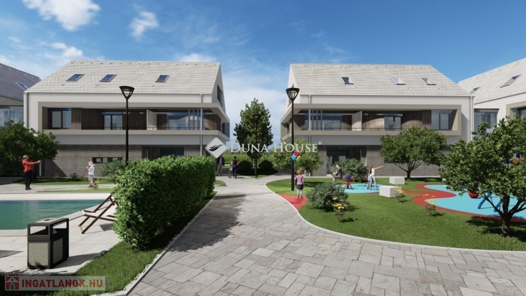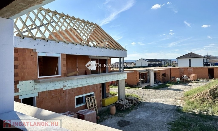 Kozármisleny folyamatosan fejlődő új részén 8 lakásból álló épületben modern, új építésű lakások eladók!Első emeleti belső kétszintes lakás nappali-konyha -étkező, 2 szobás teraszos lakás, saját autó beállóval eladó!4. Lakás első emeleti 77/96m2 helyiség lista:- Nappali- Konyha- Étkező- Terasz 10,27m2- Külön WC helyiség-Tároló helyiségTetőtér:- 2 db szoba- FürdőszobaA lakópark modern, energiahatékony rendszerekkel épül, tökéletes harmóniát képez a természettel.A lakások kényelmes, modern, funkcionális elrendezéssel, szép panorámával, magas, prémium minőségű anyagok felhasználásával csábítják új lakóikat.Minden lakáshoz díjmentes parkolóhely tartozik, a földszinti lakások saját kerttel, az emeleti lakások terasszal rendelkeznek.Az L alakú épület egy védett közösségi teret ölel körül, ahol egy közös park kerül kialakításra. Ez a védett közösségi tér az igények szerint alakítható. Lehet találkozási pont, akár medence és játszótér is megvalósítható erre a területre.A környezet kisgyermekes családok részére is biztonságos, sebességkorlátozott övezet, a közelben új óvoda, kiváló iskola is várja a gyerekeket.Műszaki tartalom:- 30cm X-Therm vázkerámia falazó-blok, 12cm grafitos hőszigetelés- 30cm födém szigetelés- Hőszigetelt műanyag nyílászárók- Földszinti gépházban kialakított hőszivattyús padlófűtésrendszer és lakásonként fan-coil gyors felfűtésre és hűtésre alkalmas rendszer, HMV körben kialakított használati melegvíz cirkulációs rendszer- Konyhákban, fürdőszobákban, Wc-ben kialakított szellőztetőrendszer közvetlenül a szabadba vezetveAz épületben még több lakás elérhető, érdeklődjön a lakások után!