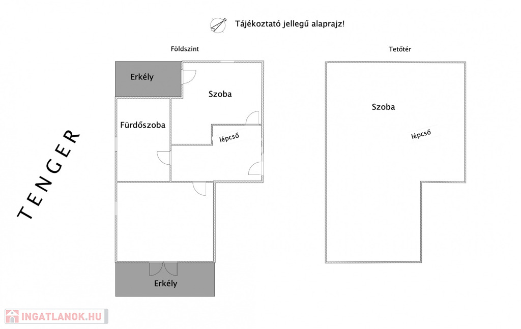 - A lakáshoz tartozik egy 50 m2 TETŐTÉR