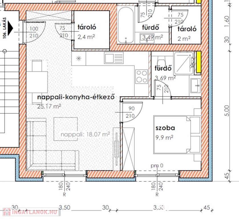 Makón, presztizs lokációval rendelkező - Makói fürdőtől 60 méterre, a Napfény Residenceben - a Páva utcában , Eladó egy most induló, tégla építésű, ELSŐ EMELETI , 41,16 nm-es élettérrel rendelkező, amerikai konyha nappali plusz egy szobás lakás (106.lakás).