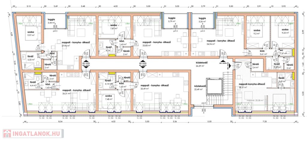 Makón, presztizs lokációval rendelkező - Makói fürdőtől 60 méterre, a Napfény Residenceben - a Páva utcában , Eladó egy most induló, tégla építésű, MÁSODIK EMELETI , 52,11 nm-es élettérrel rendelkező, amerikai konyha nappali plusz egy szobás, loggiás, lakás (203.lakás).