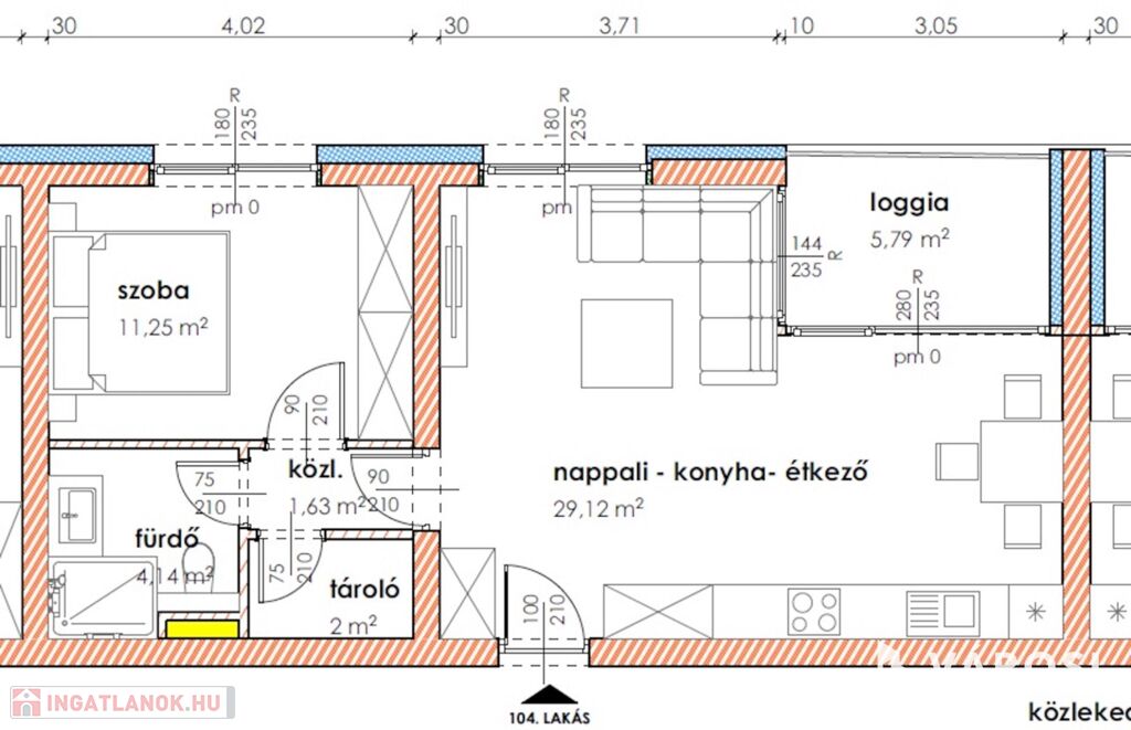 A 1 db amerikai konyhás nappalival, 1db hálószobával, 1 db fürdőszobával, közlekedővel, loggiával rendelkezik.