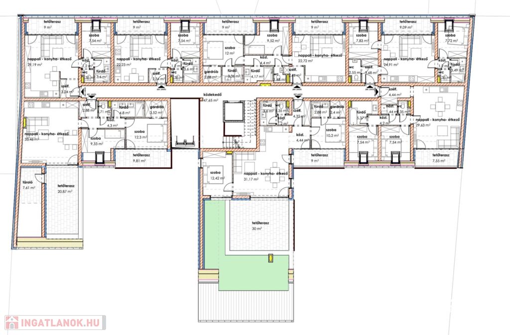 Makón, presztizs lokációval rendelkező - Makói fürdőtől 30 méterre - a Szent János téren - A Napfény Residenceben - , Eladó egy most induló, tégla építésű, MÁSODIK EMELETI , 55 nm-es élettérrel rendelkező, amerikai konyha nappali plusz egy szobás loggiás tégla lakás (2.em 2.lakás).