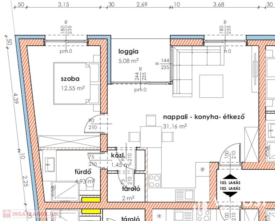 Makón, presztizs lokációval rendelkező - Makói fürdőtől 60 méterre, a Napfény Residenceben - a Páva utcában , Eladó egy most induló, tégla építésű, ELSŐ EMELETI , 57,17 nm-es élettérrel rendelkező, amerikai konyha nappali plusz egy szobás, loggiás lakás (103.lakás).