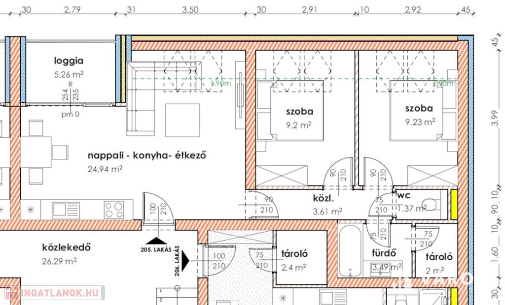 Makón, presztizs lokációval rendelkező - Makói fürdőtől 60 méterre, a Napfény Residenceben - a Páva utcában , Eladó egy most induló, tégla építésű, MÁSODIK EMELETI , 59,10 nm-es élettérrel rendelkező, amerikai konyha nappali plusz kettő szobás, loggiás, lakás (205.lakás).