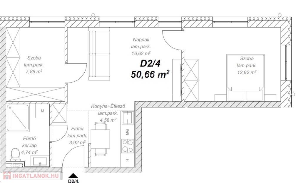 Mendén csodálatos zöld környezetben a Hétdomb lakóparkban, I. ütem második szakaszában megvalósuló új építésű zárt lakóparkban, A. kategóriás energiatakarékos ( hőszivattyús ) 16 lakásos társasházban, nettó hasznos 50,66 m² alapterületű, II. ( legfelső ) EMELETI lakást kínálunk eladásra ( D épület II. emelet 4. Lakás ).