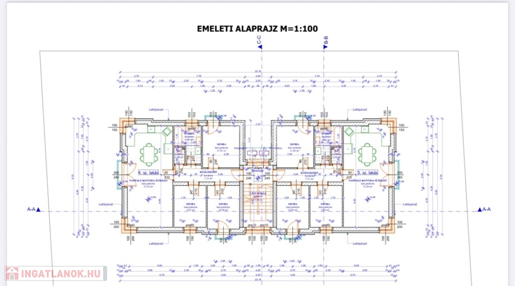 Épületenként 2 földszinti és 2 emeleti lakás