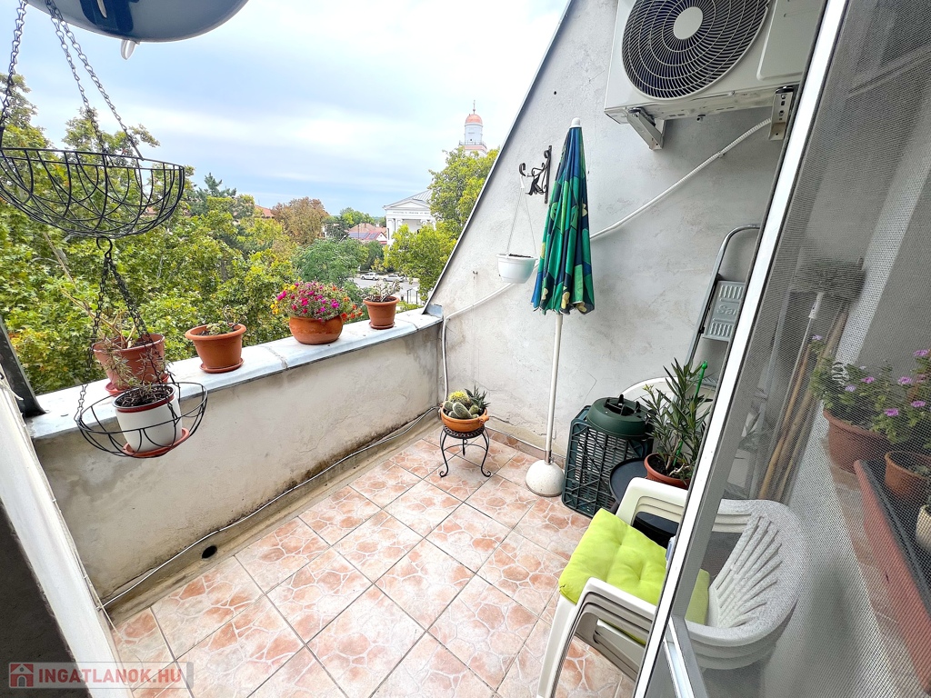 - A lakáshoz tartozik egy kényelmes alapterületű erkély, kilátással a Városházára, és a Református templomra.