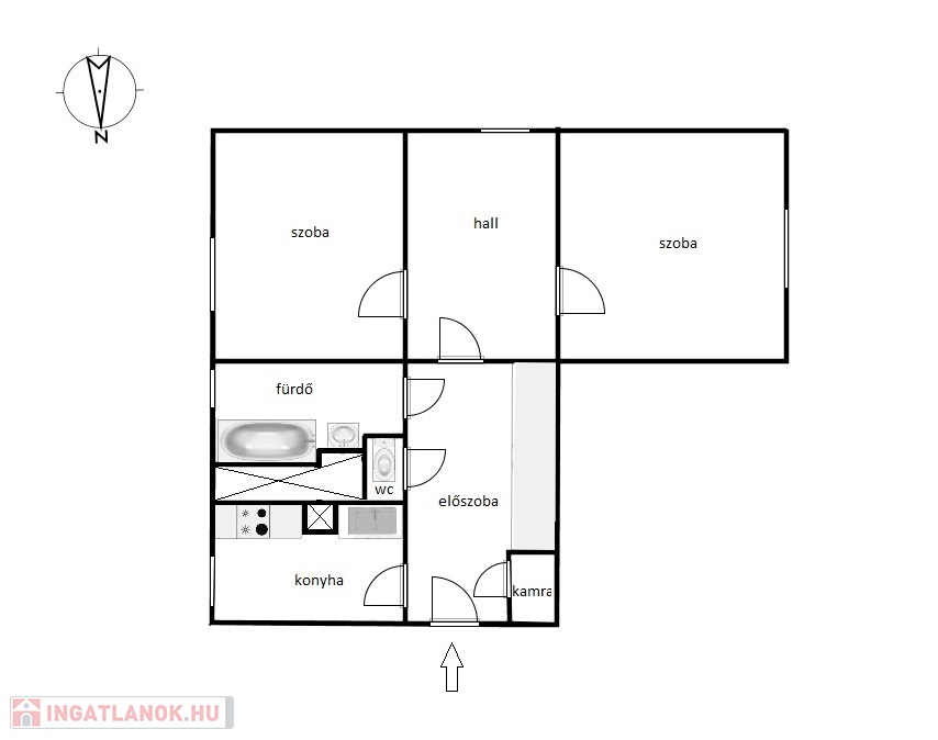 - 3 szoba, előszoba, konyha, kamra, fürdőszoba WC-vel, pince