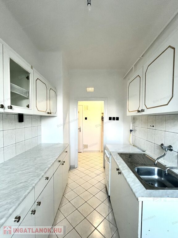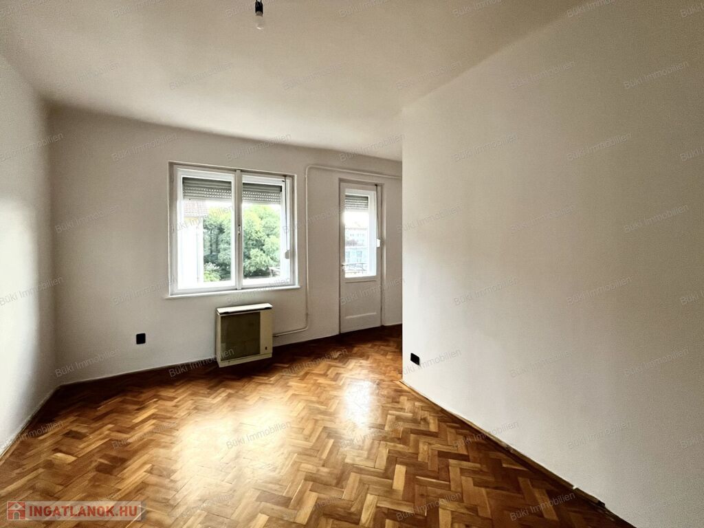 A lakás elosztása egyedi, fekvése észak–déli, így minden helyiség világos és napfényes. A szobákban jó állapotú tölgyfa parketta található, mindenhol redőny növeli a kényelmet, a dupla fa ablakok pedig télen jól tartják a meleget, nyáron pedig kellemes klímát biztosítanak. A konyha kényelmes méretű, a hozzá tartozó kamra praktikus megoldást kínál. A fürdőszoba kádas, a WC külön helyiségben található, ami jelentős előnyt jelent a mindennapokban. A nappalihoz egy kisebb, 2 m²-es terasz kapcsolódik, amely bár nem nagy, mégis hangulatos pihenési lehetőséget nyújt.